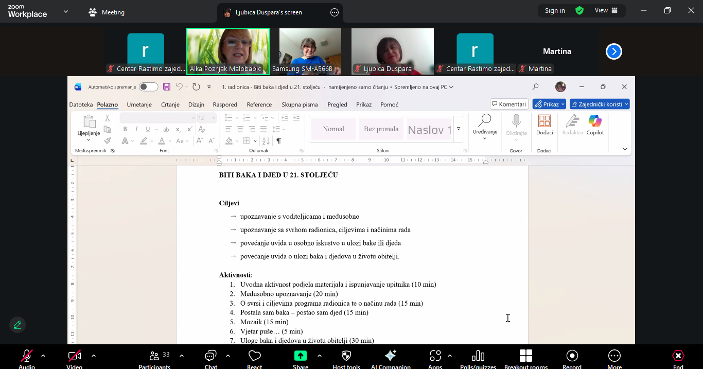 Dana 6. studenog 2025. održana je online edukacija za 34 nove voditeljice za provedbu programa „Rastimo zajedno s bakom i djedom“ . Edukaciju su vodile autorice Programa Branka Starc (koordinatorica projekta) te Ljubica Duspara, Alka Požnjak Malobabić i Vesna Marić stručne suradnice Dječjeg vrtića Radost u Zagrebu.